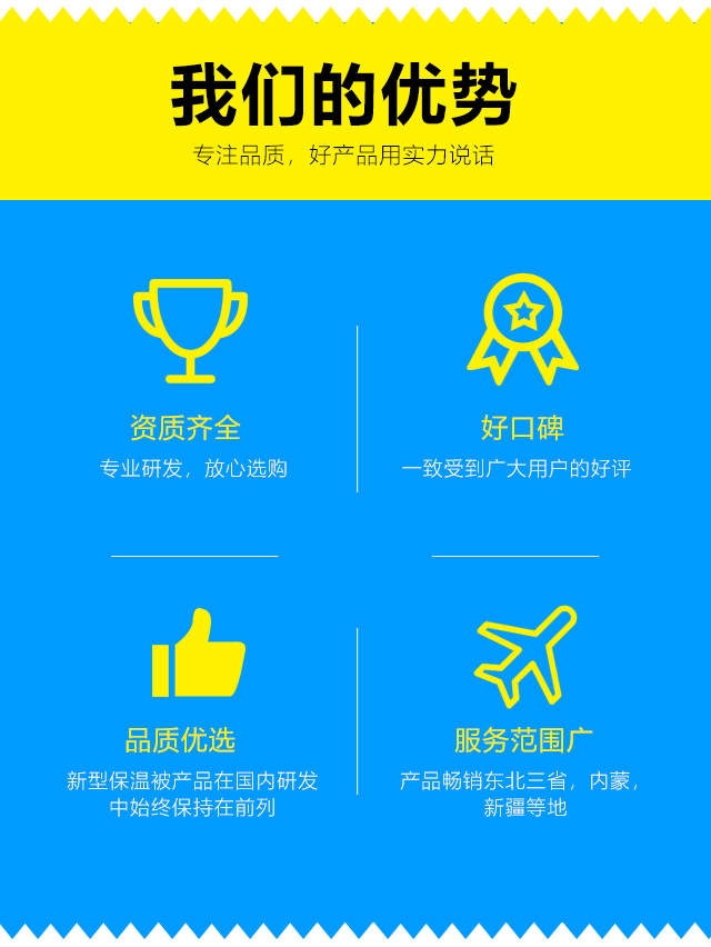 我們本著客戶之上,服務(wù)至上的原則,爭創(chuàng)國內(nèi)保溫被行業(yè)的引導(dǎo)者。